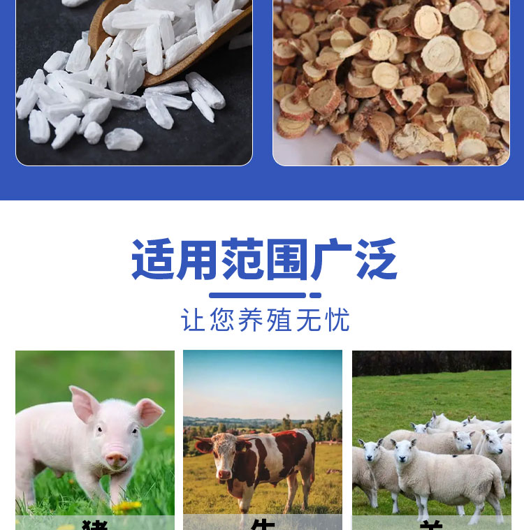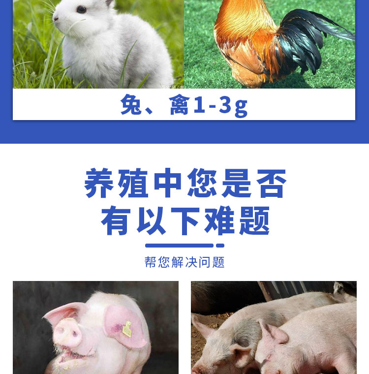 【用法用量】馬、牛200~300g;羊、豬30~60g;兔、禽1~3g。