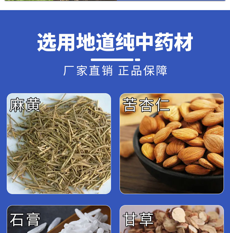【主要成分】麻黃、苦杏仁、石膏、甘草。