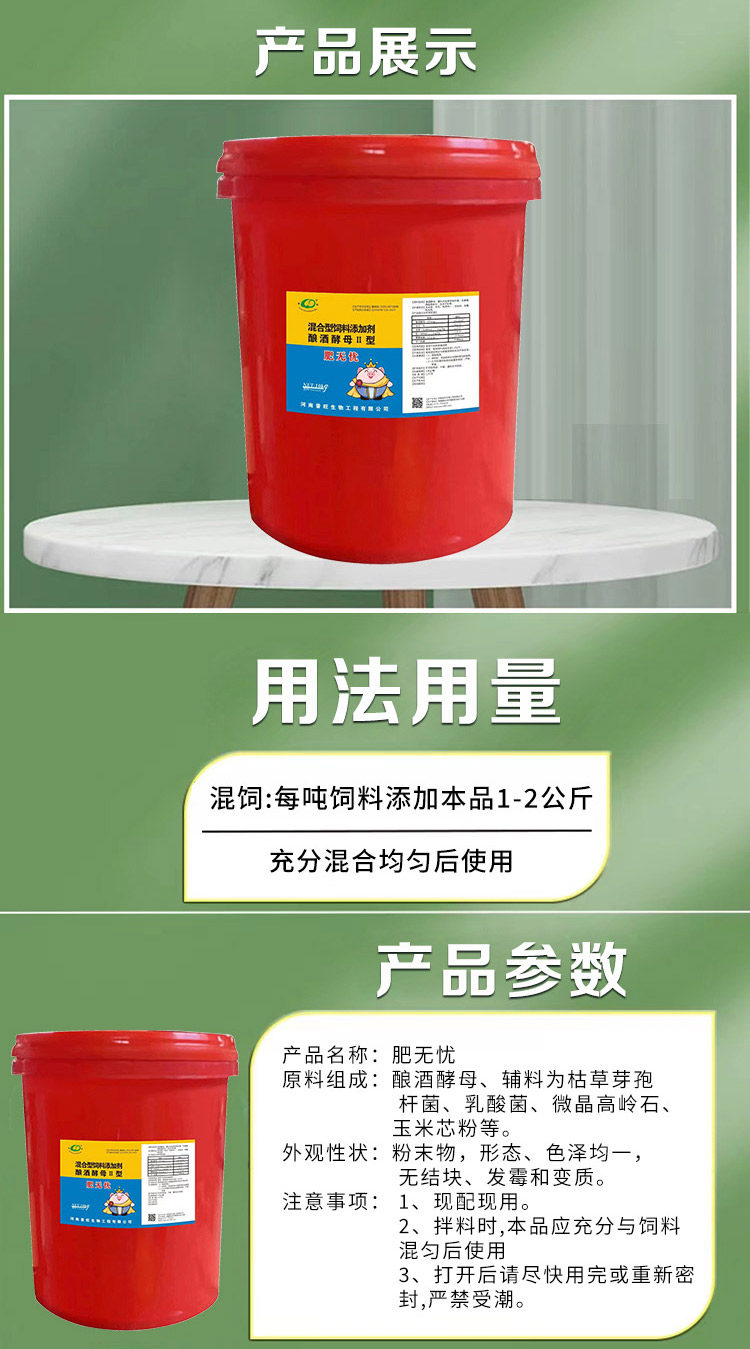 產品簡介:普旺新版GMP獸藥廠家肥無憂長肉快早出欄,益生菌促進營養吸收,快速增肥,縮短出欄日期,減少因環境產生的應激反應,提高肉質量和屠宰率,一頭豬可節省80-90斤飼料,改善體型、拉大骨架、快速催肥、快速賺錢。