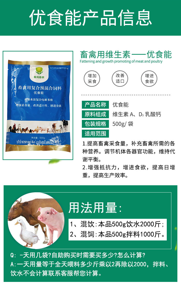 優食能 獸用超強水溶復合電解多維水產畜禽誘食劑