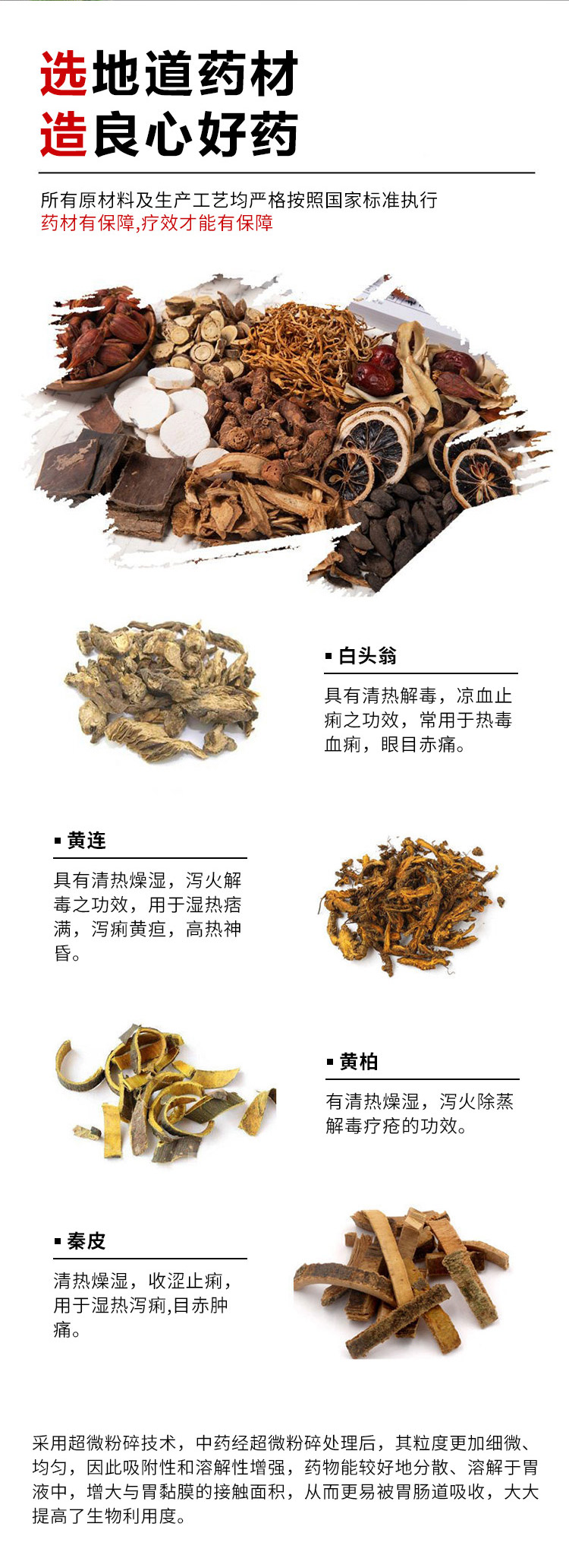 【主要成分】白頭翁、黃連、黃柏、秦皮。